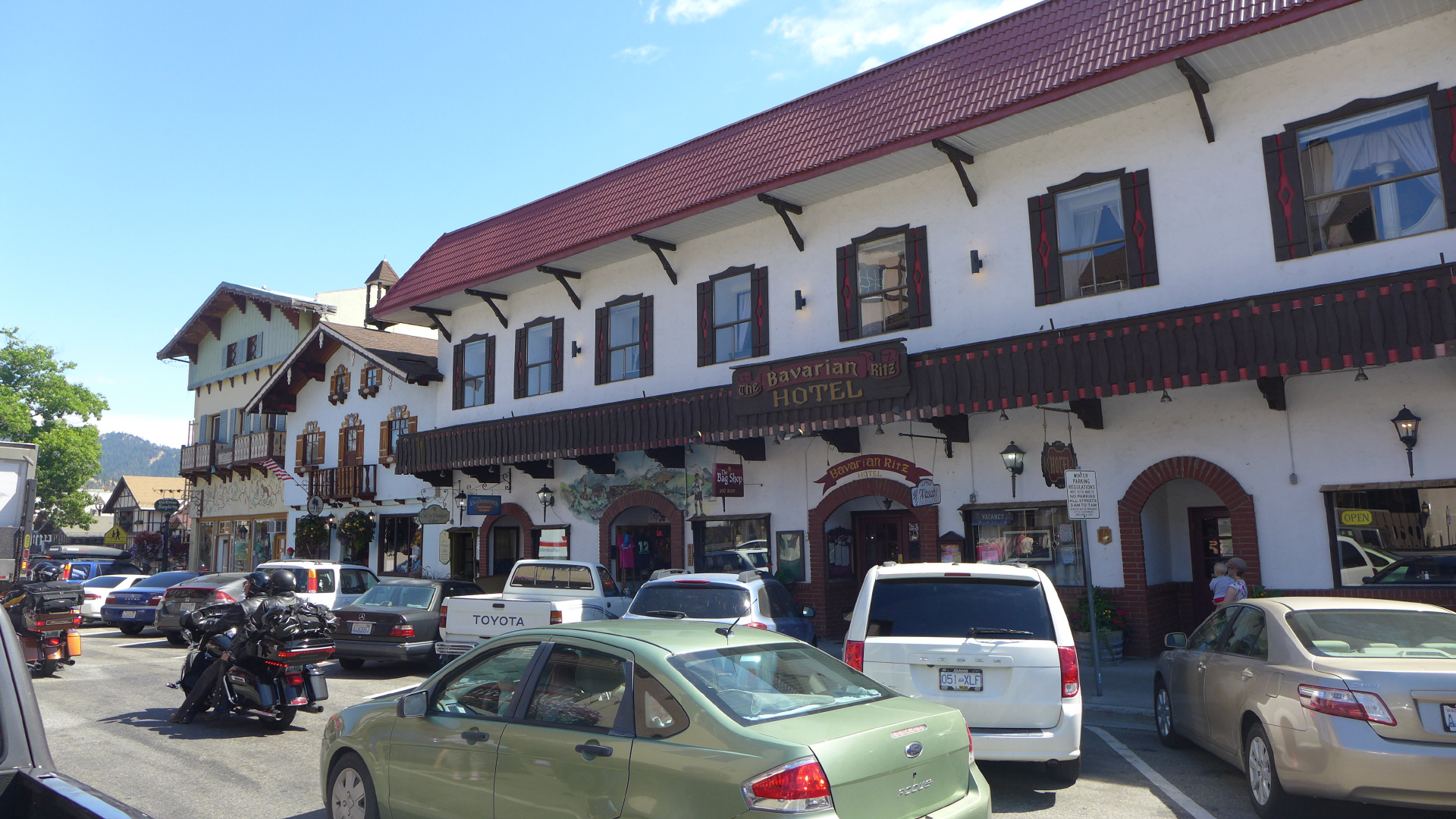 War das Wetter auf der Westseite der Cascades noch ziemlich bewölkt und regnerisch änderte sich dies nachdem überqueren des Steven Passes schlagartig und die Sonne brach durch die Wolken hindurch. Leavenworth begrüßte uns dann mit blau-weißem Himmel. So wie sich das gehört.