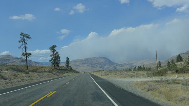 In der Zwischenzeit war auch uns klar, was der Grund für die Sperrung der 20 war. Mittlerweile haben wir in der Zeitung gelesen, in Washington State haben sich über 100 Waldbrände ausgebreitet. Erst gestern waren 3 Feuerwehrmänner beim Versuch das Feuer zu löschen und Häuser zu beschützen ums Leben gekommen. In zahlreichen Ortschaften die wir durchfuhren, hingen die Fahnen auf Halbmast. Unser Weg führte nach Omak und Omak ist sowas wie eine Zentrale der Feuerbekämpfer. Ein komisches Gefühl überkam uns bei diesen Bildern.